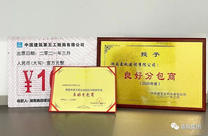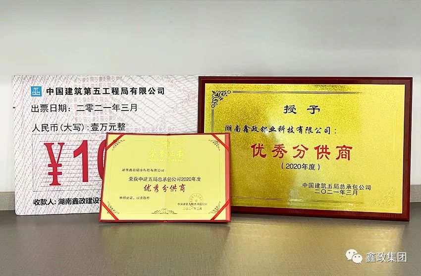 瀏覽次數(shù):1125喜訊連連捷報傳。近日,在中建五局總承包公司2021年分包(供)商答謝會暨優(yōu)秀分包(供)商表彰會上,集團下屬子公司湖南鑫政鋁業(yè)科技有限公司與湖南鑫政建設有限公司分別喜獲2020年度“優(yōu)秀分供商”與“良好分包商”獎項。